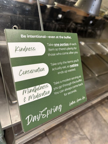 DaySpring’s standard meal service includes breakfast, lunch, and dinner for on-site groups, served buffet style and designed to satisfy the majority of guests with widely enjoyed menu selections. Fresh salads are offered at both lunch and dinner.